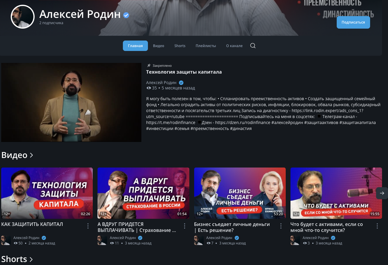 В какой-то момент Алексей Родин обзавелся и каналом на RuTube. Однако хоть сколько-нибудь востребованным он не является. На него подписано всего 2 человека, тогда как многие ролики, даже выложенные несколько месяцев назад, не набирают и 10-и просмотров.