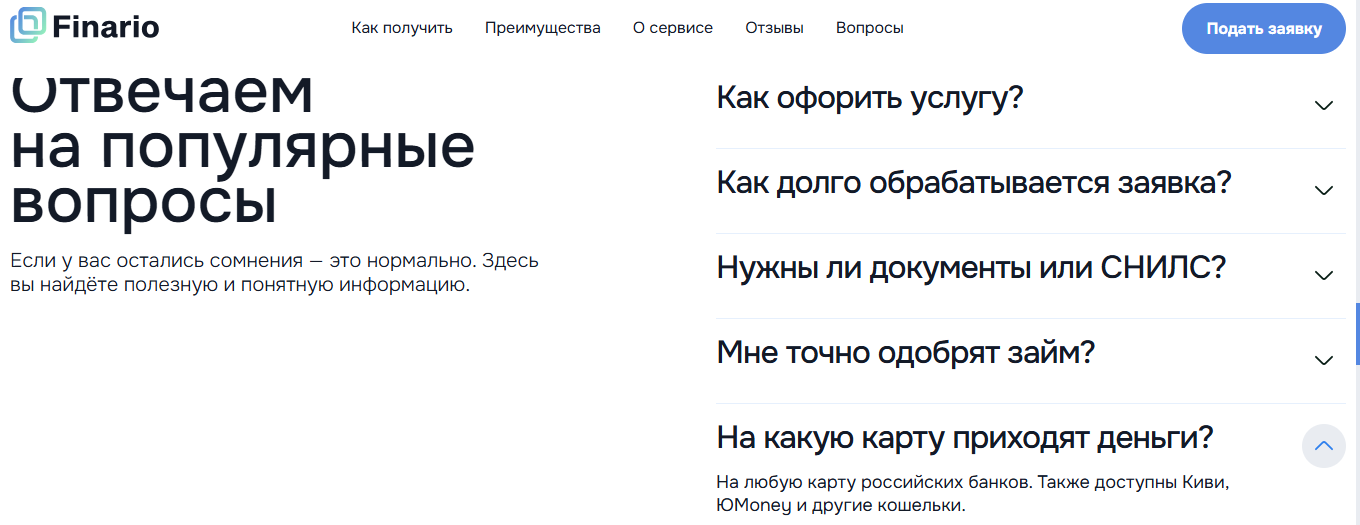 Как работает сайт микрозаймов finario ru