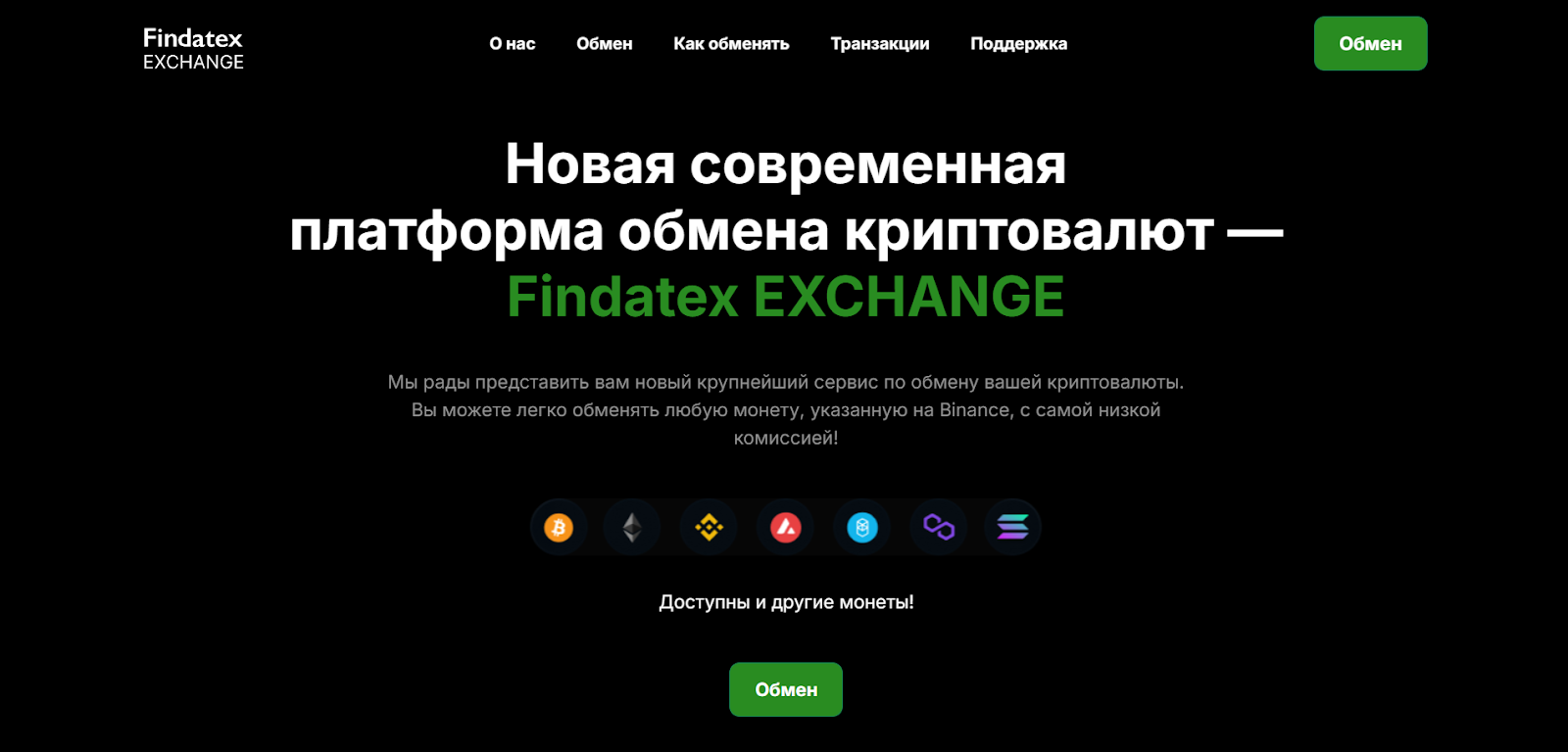 Findatex com – официальный сайт обменника, который появился совсем недавно. Разработчики представляют проект, как новую и современную платформу для обмена криптовалюты. По заявлению создателей, обменять можно любую монету, которая указана на бирже Binance.