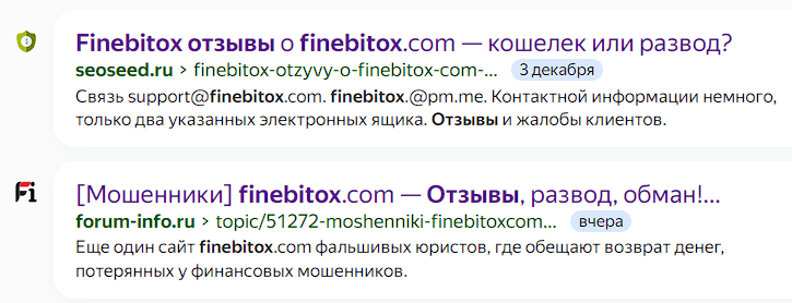 В сети нашли два обзора, где не советуют хранить крипту в Finebitox. Эксперты считают этот ресурс ненадёжным из-за скрытности и махинаций с датой создания сайта.