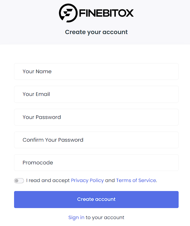 Криптокошелёк Finebitox позиционирует себя как платформа с прозрачными условиями. Однако доступ на сайт открывается только после регистрации с использованием промокода. Компания не уточняет, где и как его можно получить.