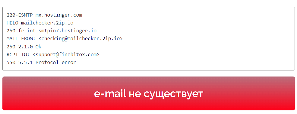 Для связи указаны два e-mail: support@finebitox.com и finebitox@pm.me. Оба мы проверили на сервисе 2ip.ru – адресов не существует. Других компания не оставляет.