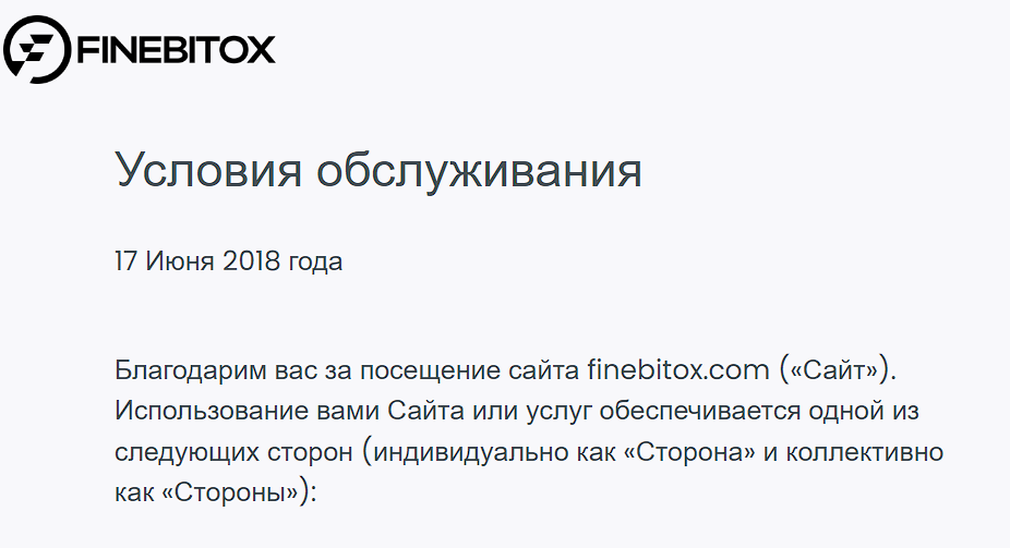 Сайт finebitox.com является закрытым для случайного пользователя. Чтобы получить доступ к условиям использования кошелька, необходимо пройти регистрацию с введением промокода.