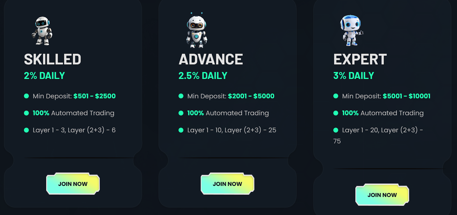 После вложения денег ИИ берет на себя управление портфелем клиента. Он начинает проводить сделки от имени пользователя. При этом человек может рассчитывать на начисление дохода. В качестве минимальной суммы для вложений заявлено всего 50 USD. При этом клиентам гарантируют возможность ежедневного вывода денег.