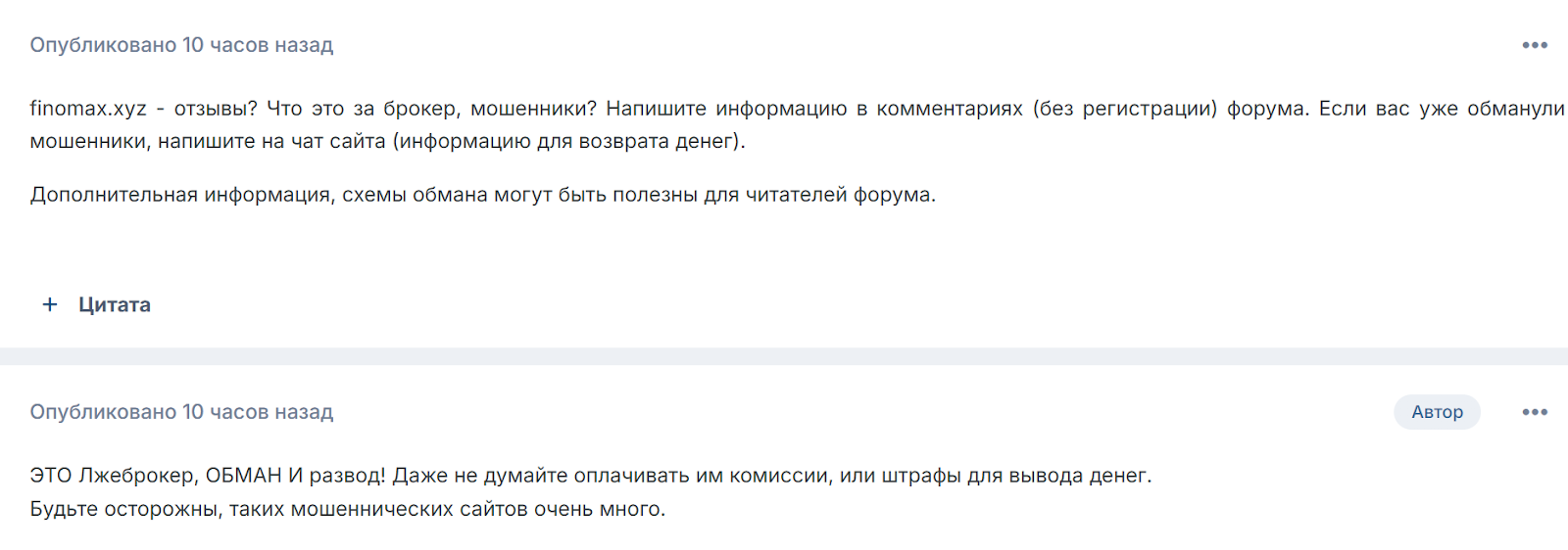 В тех же отзывах о Finomax, которые встречаются, пользователи жалуются на работу платформы и заявляют о мошенничестве.