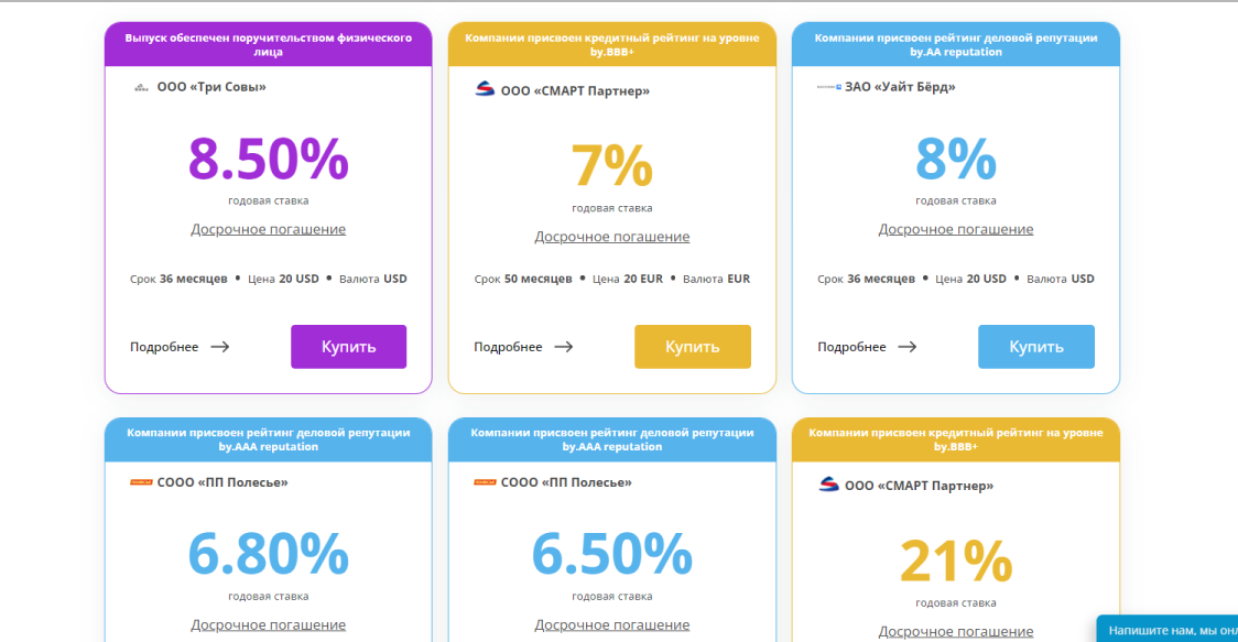 - ООО “Смарт Партнер”. Нужно инвестировать 20 BYN на 36 месяцев. Можно ожидать 21% прибыли;