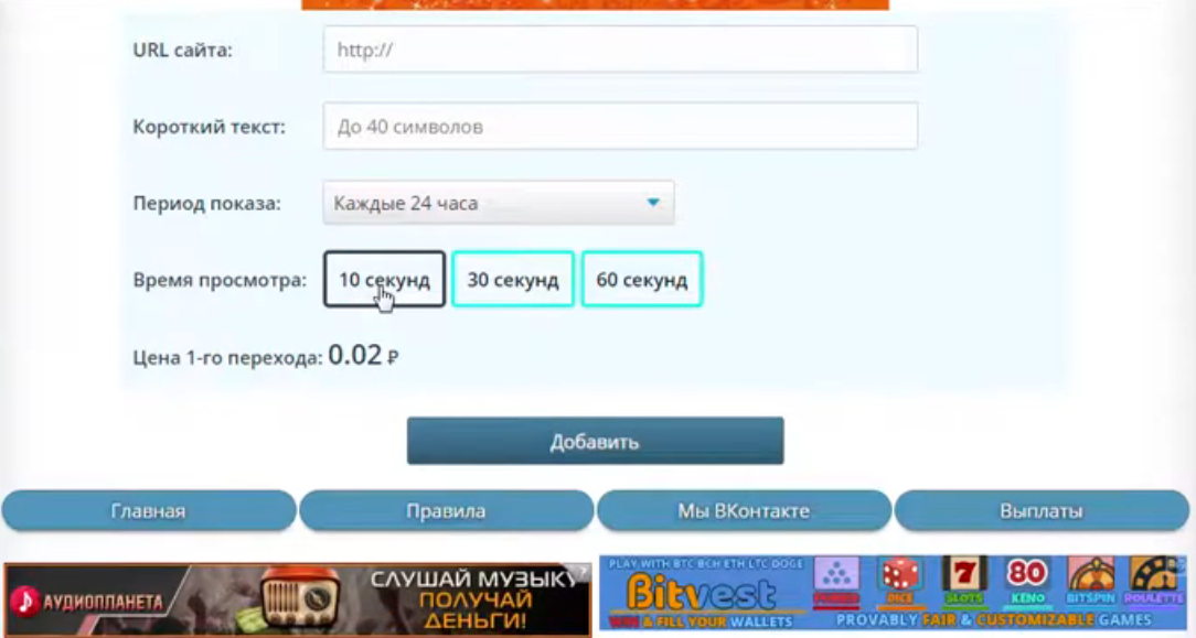 Аналогичная ситуация и с реферальной программой. Рефераловодам обещают 10% от заработка привлеченного пользователя и совсем не платят за пополнение счета рекламодателем.