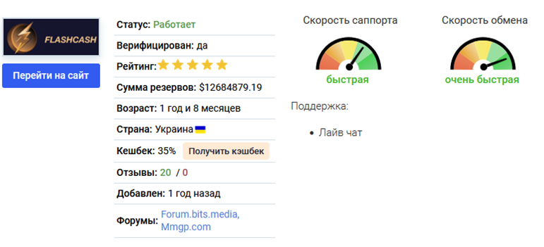 Сведения об обменнике flashcash top с учетом информации, полученной от проверенных агрегаторов: