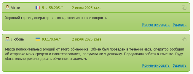 В остальном отзывы положительные. Клиенты отмечают быстроту транзакций, возможность вывода крипты на банковские карты (сервис работает только с Украиной), нормальную техподдержку.