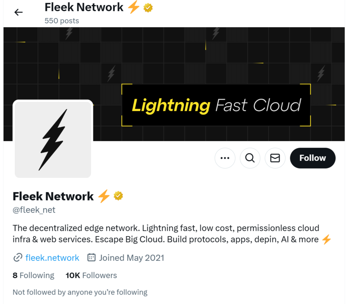 Для продвижения экосистемы и ее токена среди пользователей было создано ряд страниц в соцсетях. К примеру, в Твиттере доступен профиль fleek_net. На начало 2025-го к нему подключено около 10 тыс. фолловеров, а сам проект работает с мая 2021-го.