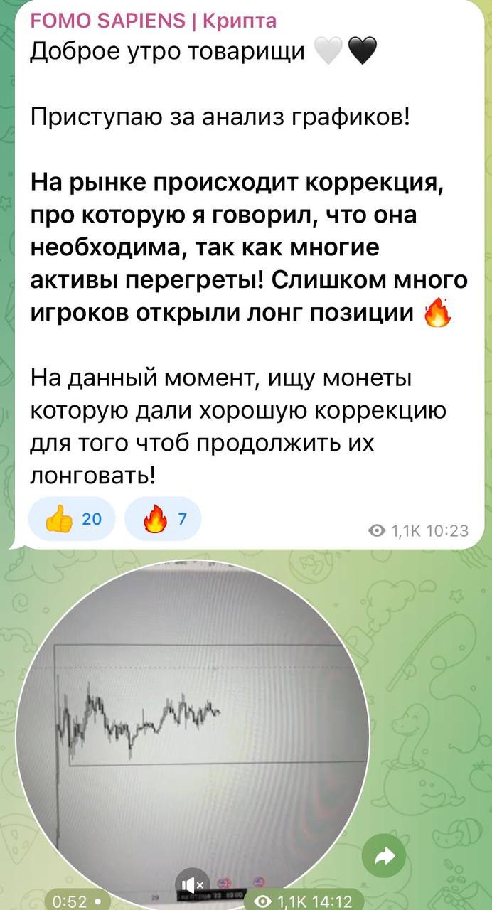 Фомо Сапиенс — это телеграм-канал, который предлагает своим читателям рекомендации по виртуальным активам без взимания платы. Руководитель канала заявляет о направлении усилий на достижение прибыльности операций своих клиентов. Мы решили провести проверку, чтобы понять, соответствуют ли действительности его обещания, или, возможно, мы имеем дело с типичным мошенником.