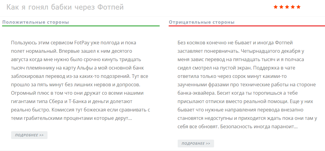 О каких либо характерных отличиях fotpay com мы также узнали из отзывов о нем. Итак, на сайте есть: