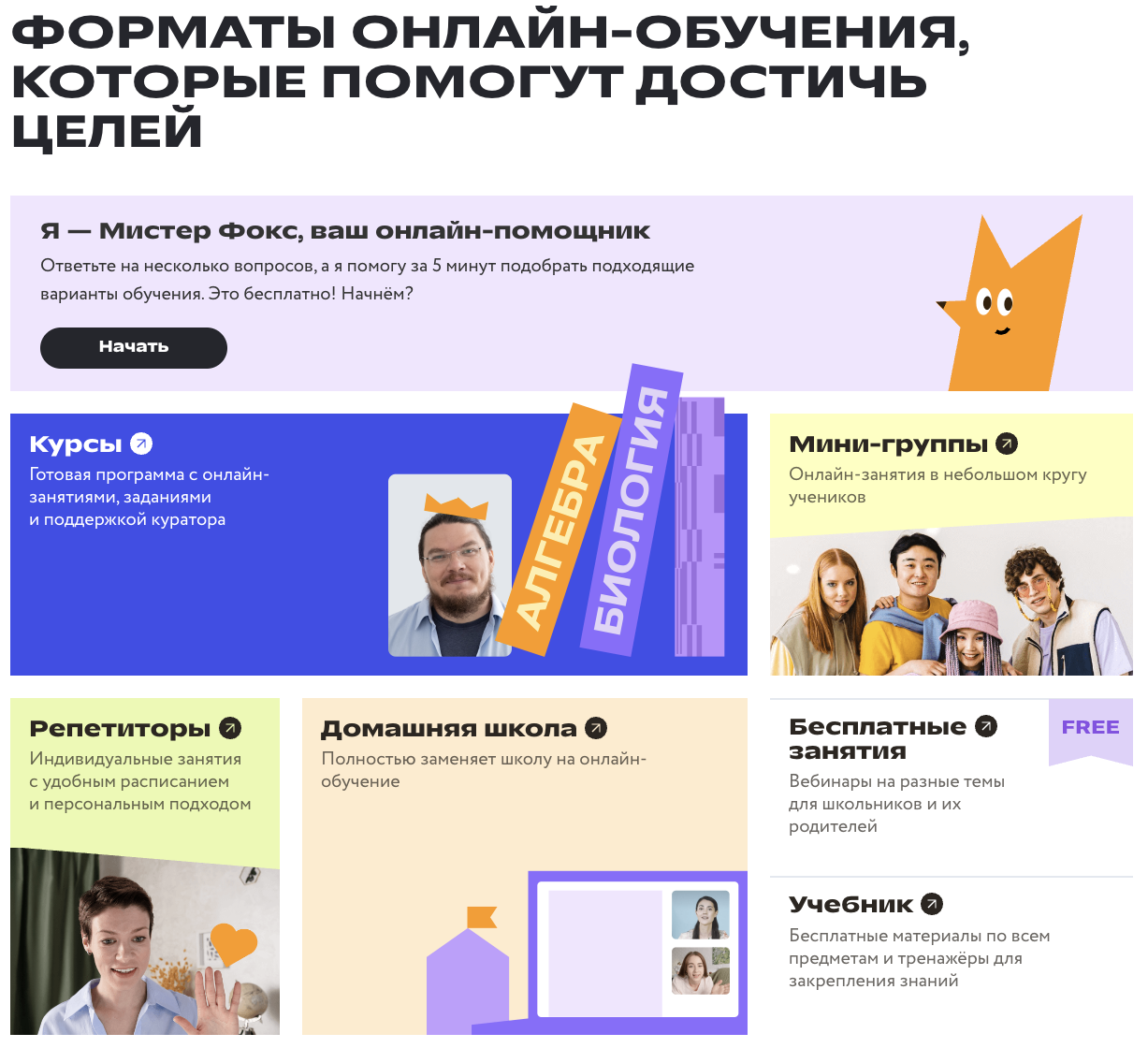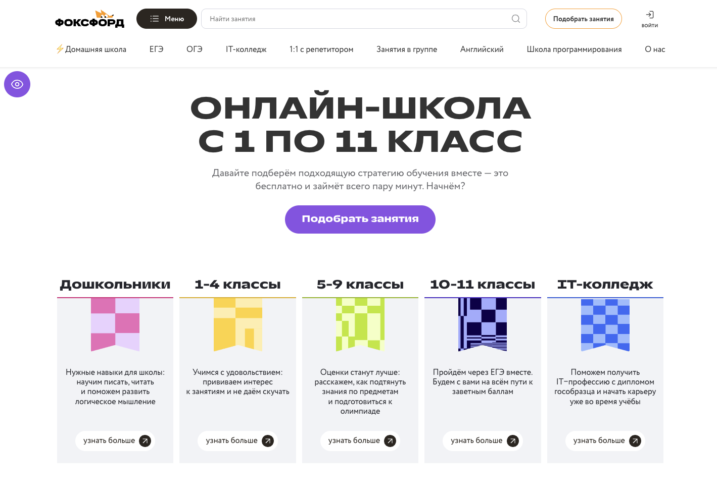 В онлайн-школе «ФоксФорд» есть отдельные курсы для полноценного домашнего обучения. Также в ней можно изучать отдельные дисциплины, например, английский язык и программирование либо получать помощь при подготовке к ОГЭ и ЕГЭ.
