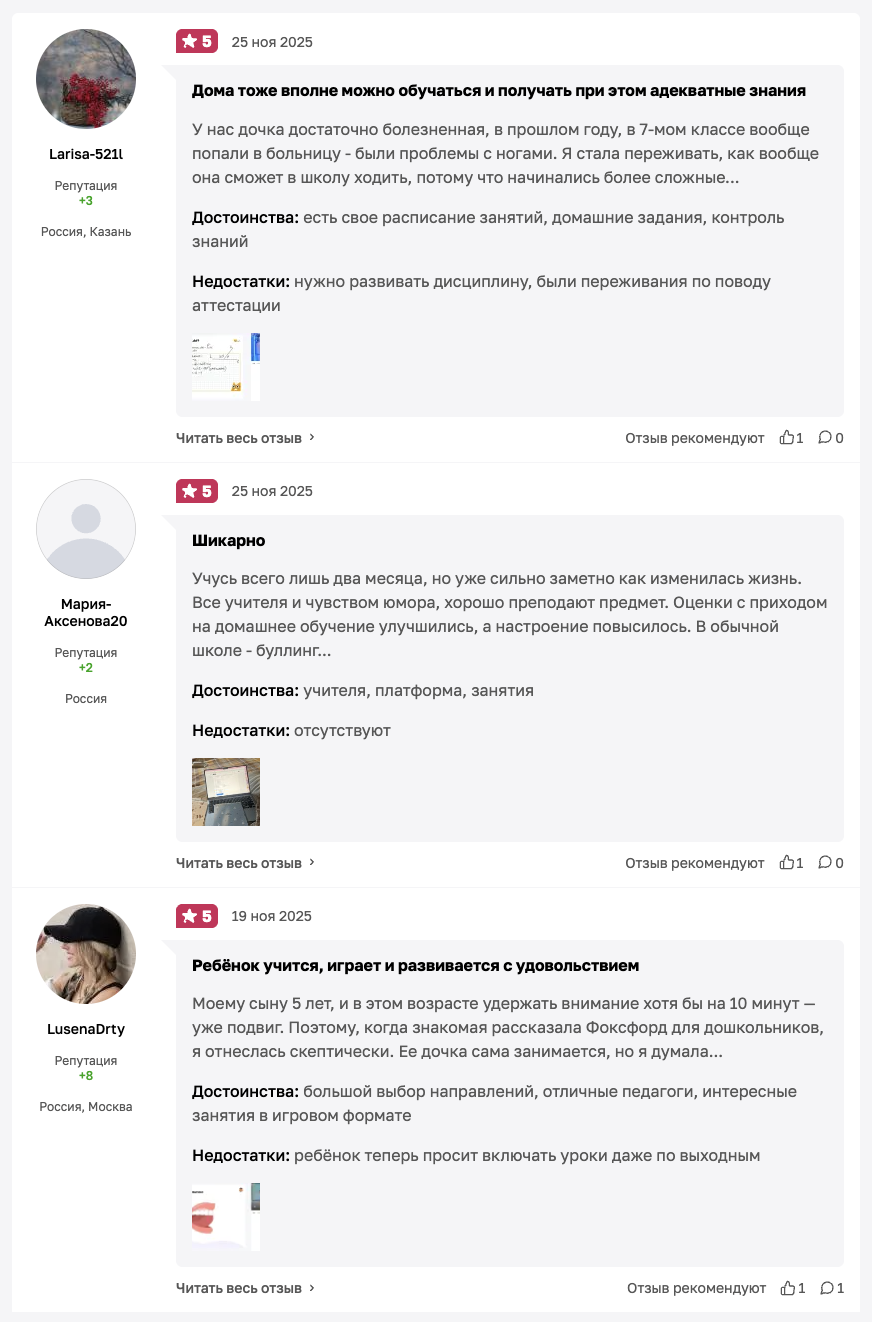 Если у вас есть собственное мнение о школе «ФоксФорд Ру», тогда поделитесь отзывом о ней под нашим обзором.