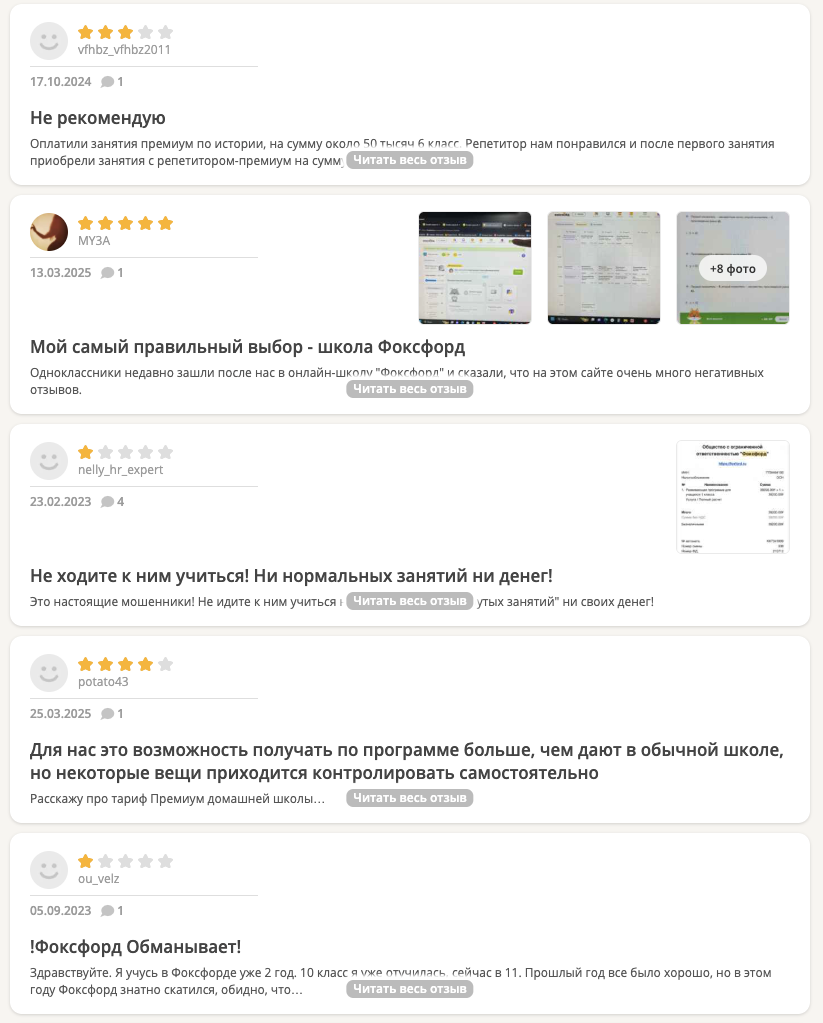 Анализ отзывов о школе «ФоксФорд»
