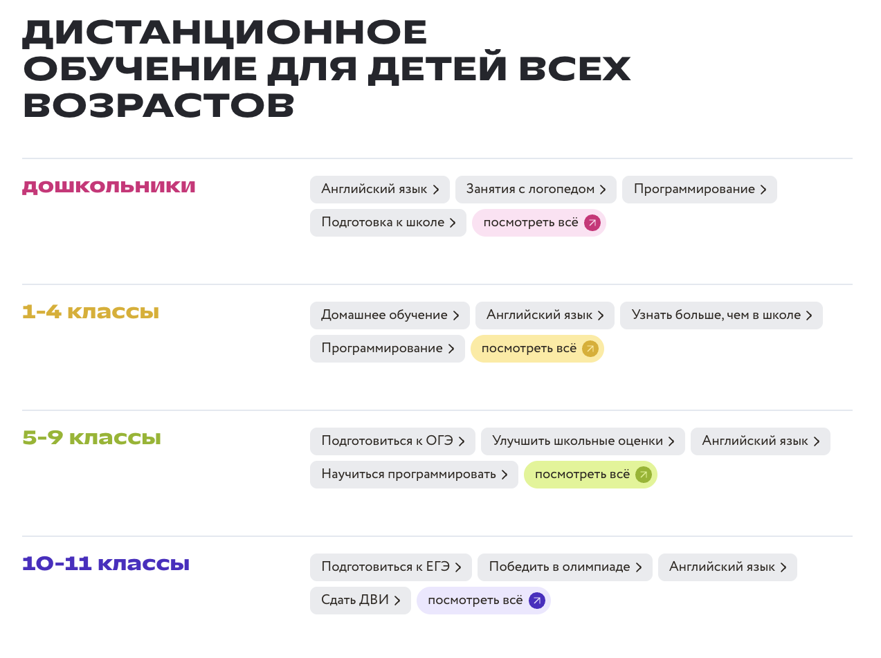 Клиенты могут покупать отдельные пакеты занятий. Например, курс по английскому уровню Beginner в школе FoxFord стоит 72,5 тысяч рублей. Он включает в себя 90 уроков, которые проводят в небольшой группе.