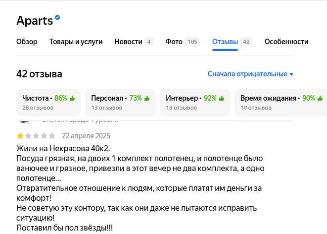 Другое дело — негатив. Там раскрывается правда о компании. Люди пишут: наглые и хамоватые сотрудники, постельное белье грязное, не возвращают залог, приходиться самостоятельно мыть полы и посуду. Конкретно по франшизе откликов нет, но можно сделать вывод, что если все так плохо с отношением к клиентам, то и с франшизой 100% не все гладко.