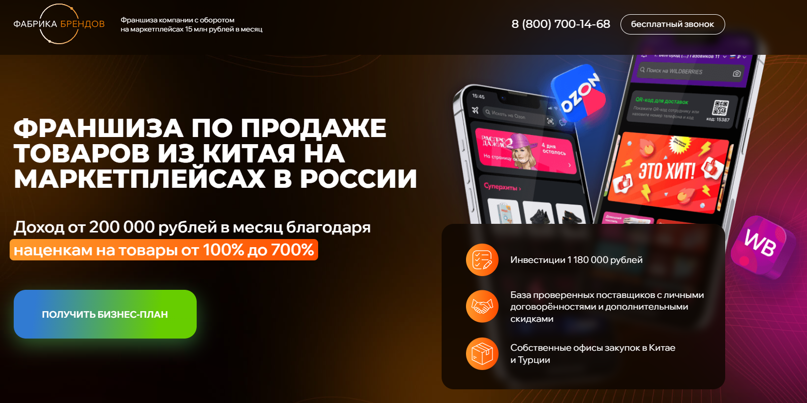 Франшиза предлагает зарабатывать на маркетплейсах. Покупателям обещают, что они смогут зарабатывать на маркетплейсах от 200 000 рублей. Это средние показатели для опытных продавцов, но для новичков такие цифры выглядят очень солидно.