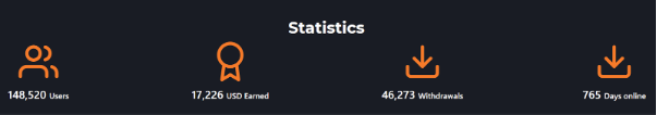 На сайте можно узнать статистику компании, которая должна внушить пользователю доверие. То, что проект более 760 дней онлайн легко проверяется – это действительно так, домен был зарегистрирован даже еще раньше. Однако данные о почти 150 тыс. активных пользователей и заработанных 17200$ проверить достаточно тяжело. Да, трафик сайта превышает 100 тыс. посетителей, однако какой процент из них авторизован – неизвестно.