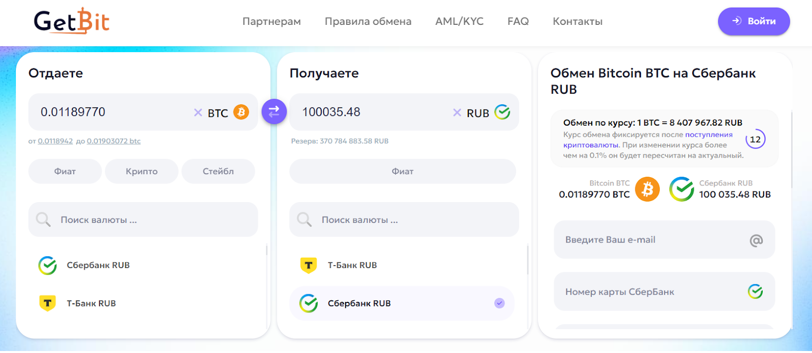 Отзывы об обменнике Getbit