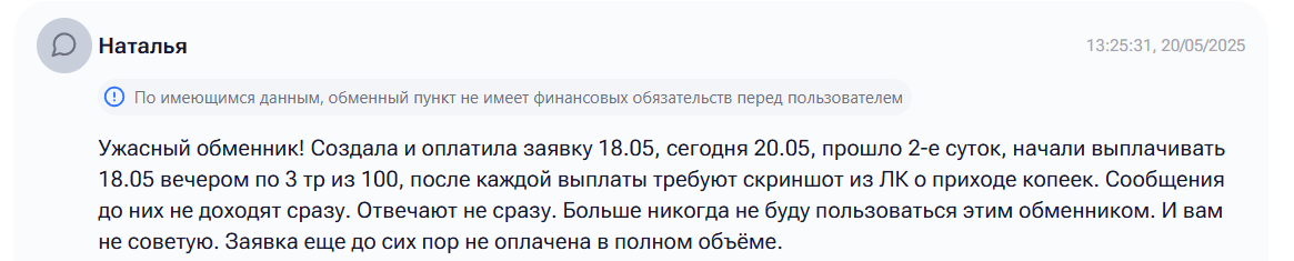 Getbit — криптовалютный обменник, который работает с любыми картами российских банков. Однако сервис умалчивает, что перевод крупной суммы будет осуществляться иногда неделями. Заявку исполняют небольшими платежами по 2-3 тысячи рублей, точно такая же практика сейчас и на P2P маркетплейсах топовых крипто бирж. Однако растянутые сроки наталкивают на мысль, что резервов у компании не хватает. Минусы:
