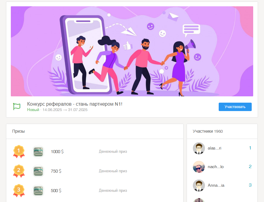 Конкурсы и реферальная программа