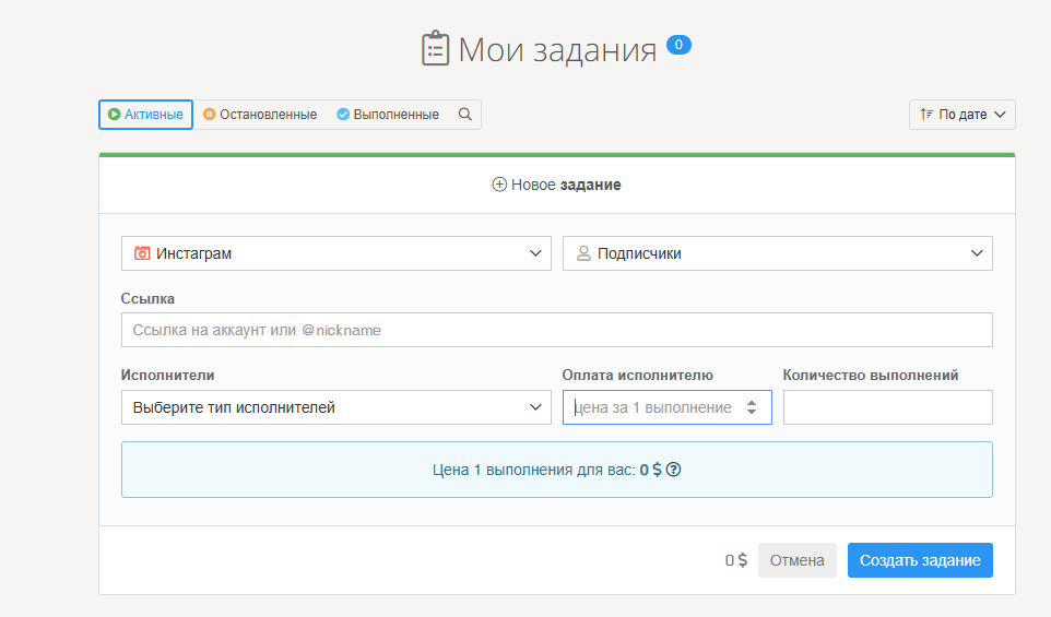 Если вас интересует исключительно заработок, сразу можно переходить в раздел «Биржа заданий». В нем представлены задачи от других участников проекта. Рядом с каждой из них указан тип (подписка, лайк, комментарии или другое), социальная сеть, а также оплата за выполнение. Отметим, что сказочных выплат ждать не стоит. За одно выполненное задание пользователи получают около 0,002 доллара.