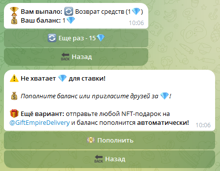 Итоги обзора на Telegram-бота Gift Empire