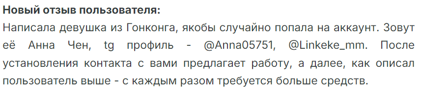 Gloabestincome — типичный развод на выполнении заданий. Попадаются те, у кого открытый Telegram, засвеченный в разных сообществах. Пишут незнакомые люди, предлагают пообщаться, а потом заработать. Таких нужно обходить стороной, особенно, если это азиатские аккаунты.