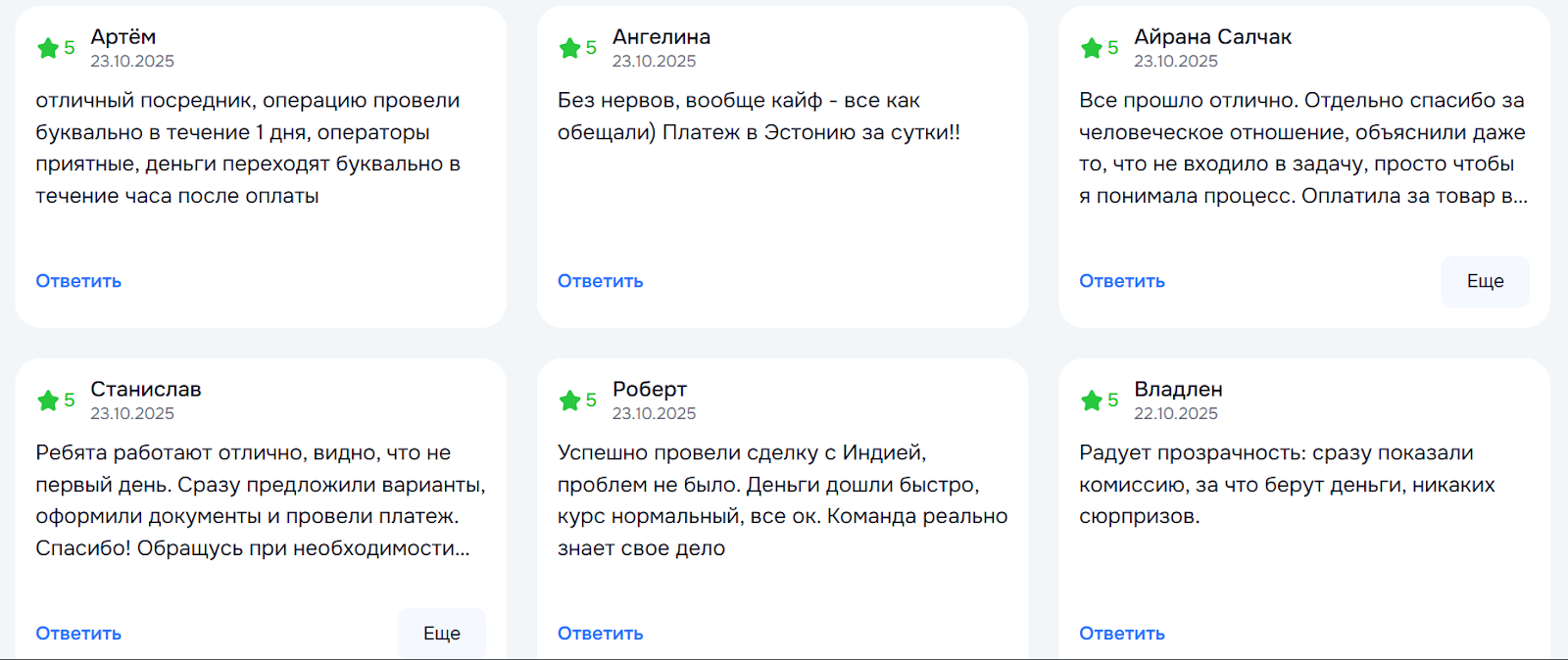 В сети компания Global finance ved отзывы получила только в последние несколько месяцев, а не с 2022 года, как указано на официальном сайте. Стоит отметить, что все они выглядят подозрительно положительно и размещены только в одном месте и появились с разницей всего в несколько дней. С учетом того, что многие другие факторы при проверке оказались неправдивыми, можно подозревать, что и отзывы о Gfved com также оказались фейковыми.