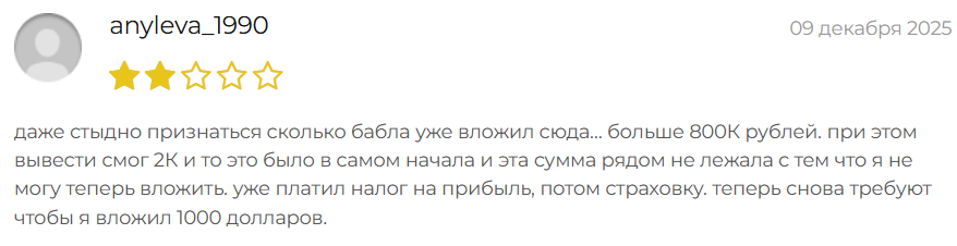Участники вкладывают много денег в проект, но вывести дают в десятки раз меньше. При этом с участников требуют оплачивать страховку, налог на прибыль и другие доплаты.