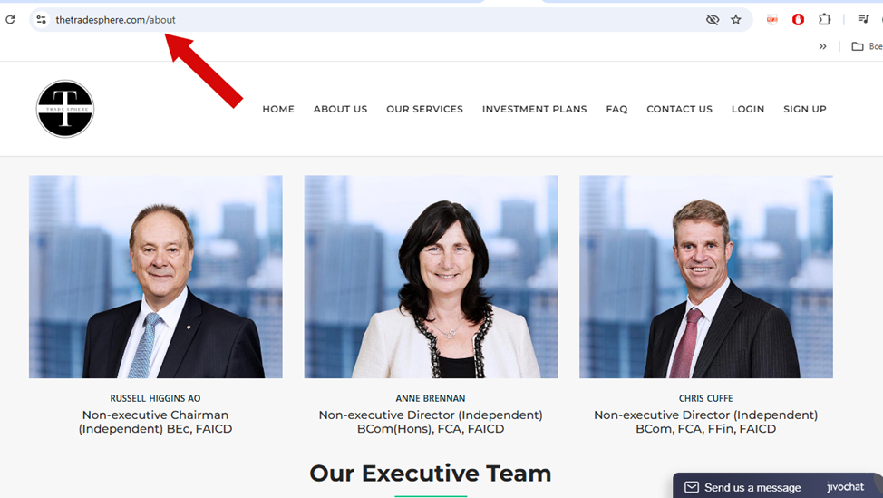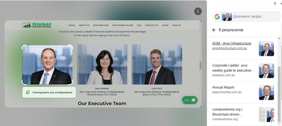 В разделе «О компании» клиентов знакомят с руководством Globalstocktrading Org. Директором заявлен Рассел Хиггинс. В действительности он не связан с инвестиционной платформой, а является главной австралийского агрохолдинга AGM.