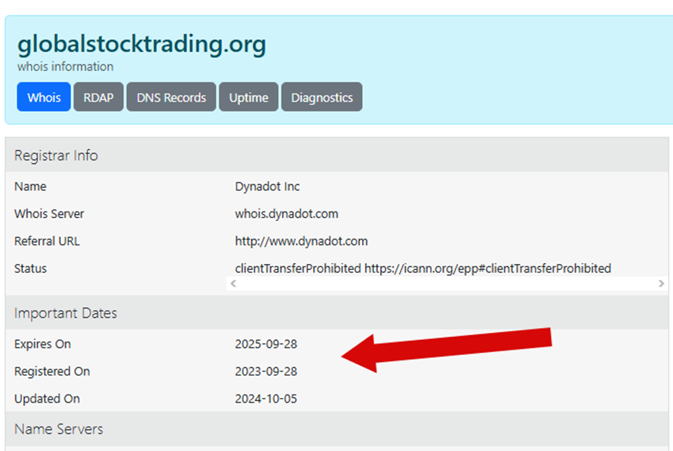 Официальный сайт Globalstocktrading Org зарегистрирован в 2023 году, что еще раз опровергает многолетнюю работу компании. Резервация домена не продлевалась с момента его появления, что несвойственно крупным платформам, ведущим легальный бизнес.