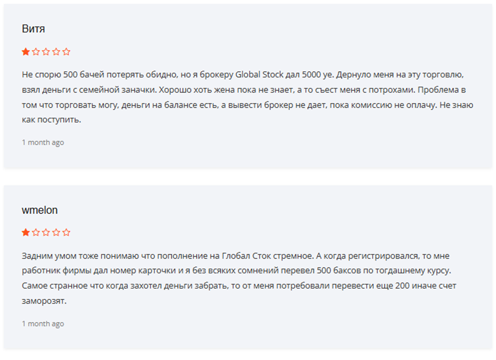 - клиенты в отзывах пишут о нарушении договора, отказах руководства Globalstocktrading вернуть деньги;
