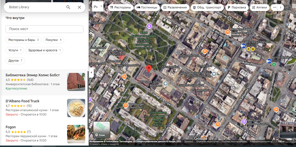 Вместо головного офиса по адресу 70 Washington Square South, New York, NY 10012, United States, указанному на сайте в качестве юридического, расположена университетская библиотека.