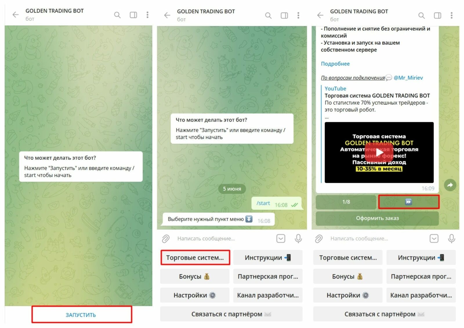 Бот GOLDEN TRADING BOT — это очередной лохотрон. В интернете аферисты уже неоднократно предлагали пользоваться услугами якобы уникальных ботов. Условия были заявлены идентичные. Но по факту оказывалось, что никакого “продвинутого бота”, который мог бы обеспечить успешную торговлю на постоянной основе нет. Клиенты просто переводили деньги, оказались обмануты черным брокером.
