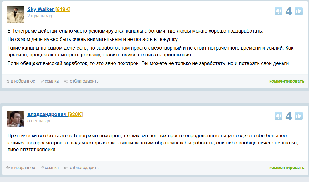 Отзывы в сети говорят, что боты в телеграмм, где можно подзаработать или дешево что-то купить – чаще всего лохотрон. Это касается и проектов, которые рекламируются в ленте аккаунта.