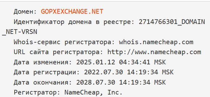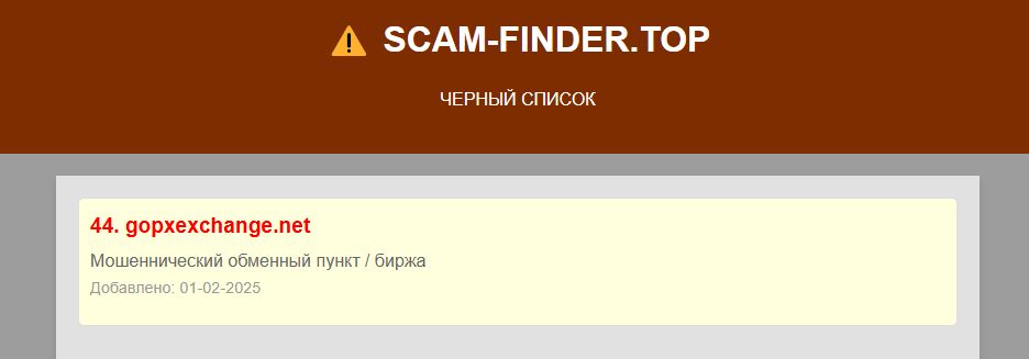 В 2025 домен gopxexchange net был внесен в черный список и помечен как мошеннический.