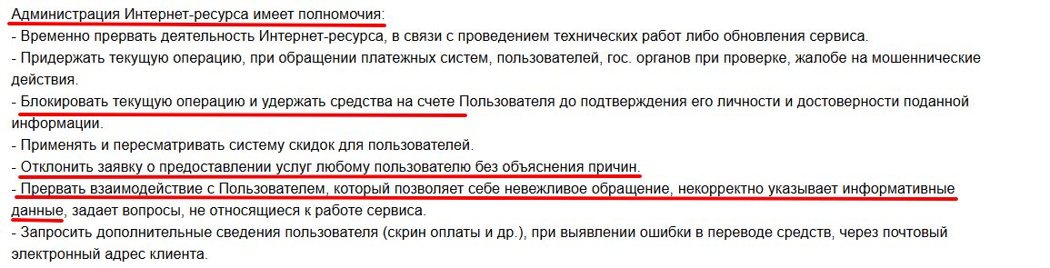 Под «отказом в обслуживании» администрация вполне может подразумевать заморозку средств и игнорирование ваших сообщений.