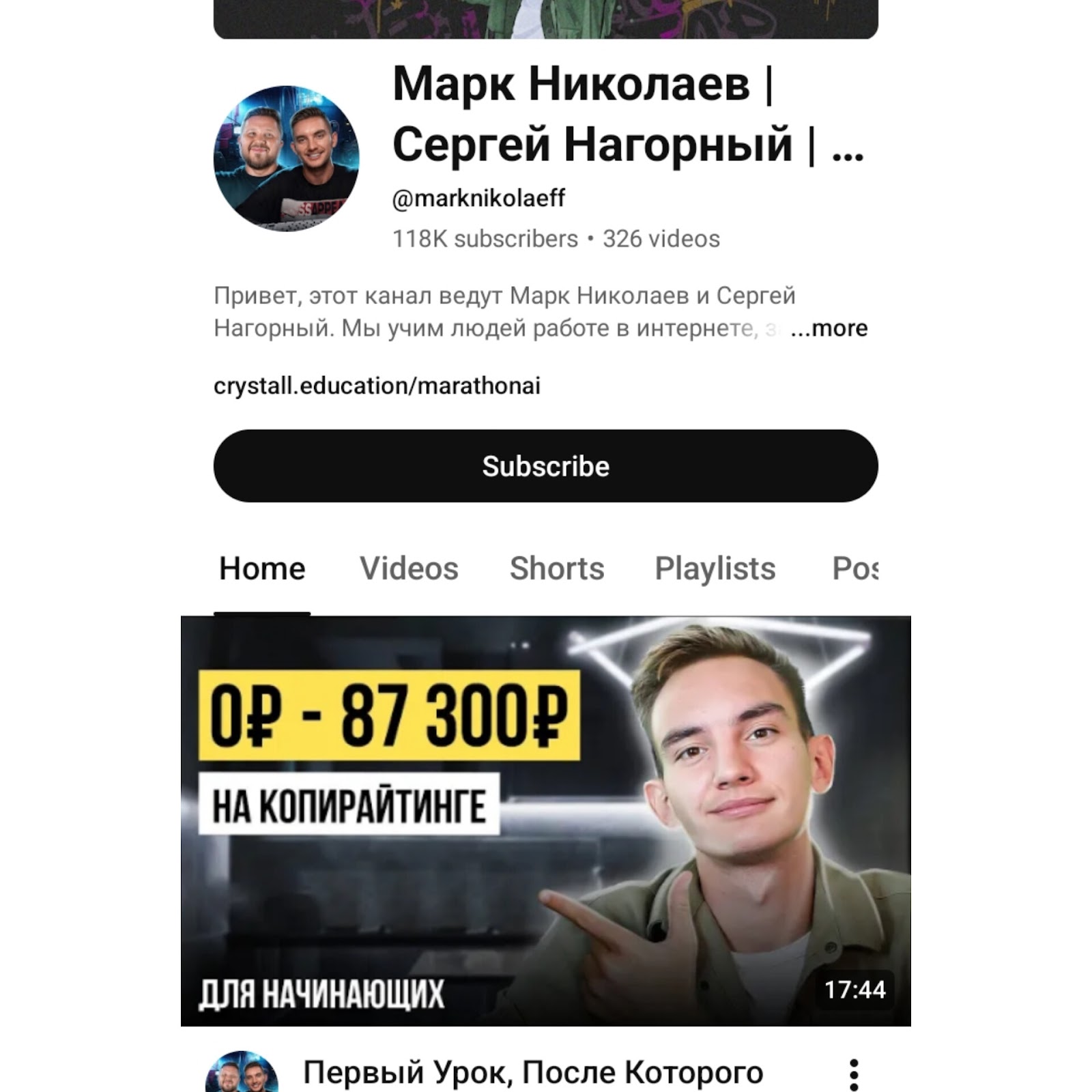 Ютуб канал Марк Николаев Сергей Нагорный ведется с 2022 года, и здесь 118 тыс. пользователей.