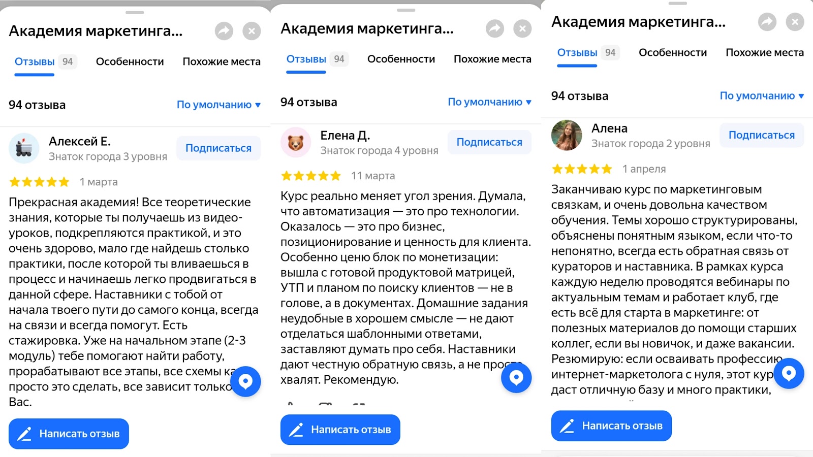 На сторонних платформах есть разные высказывания о рассматриваемой школе. Пользователи пишут, что обучение хорошо структурированное и полезное.