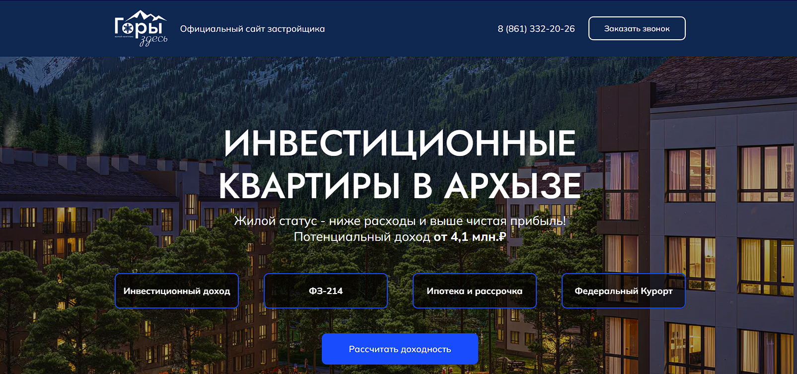 «Горыздесь рф» – инвестиционный проект от застройщика в Архызе. Он предлагает купить квартиру, сдавать ее в аренду и получать прибыль. Причем сдачей и обслуживанием будет заниматься не инвестор, а управляющая компания.