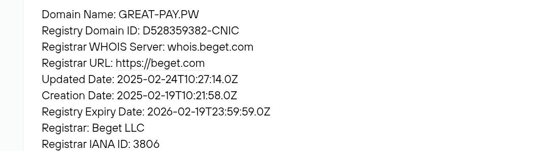 В разделе «О компании» написано, что проект «Грейт Банк» основан в 2001 году. Проверка на сервисе nic.ru показала дату создания сайта 19.02.2025. Это заставляет усомниться в честности владельцев.