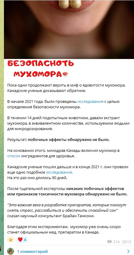 Контент «Грибной феи» не внушает доверия. В своих постах автор смешивает реальные научные данные с громкими заявлениями, у которых нет доказательств. Это может сбивать с толку. Одни материалы могут быть полезными, а другие — поверхностными и слабыми.