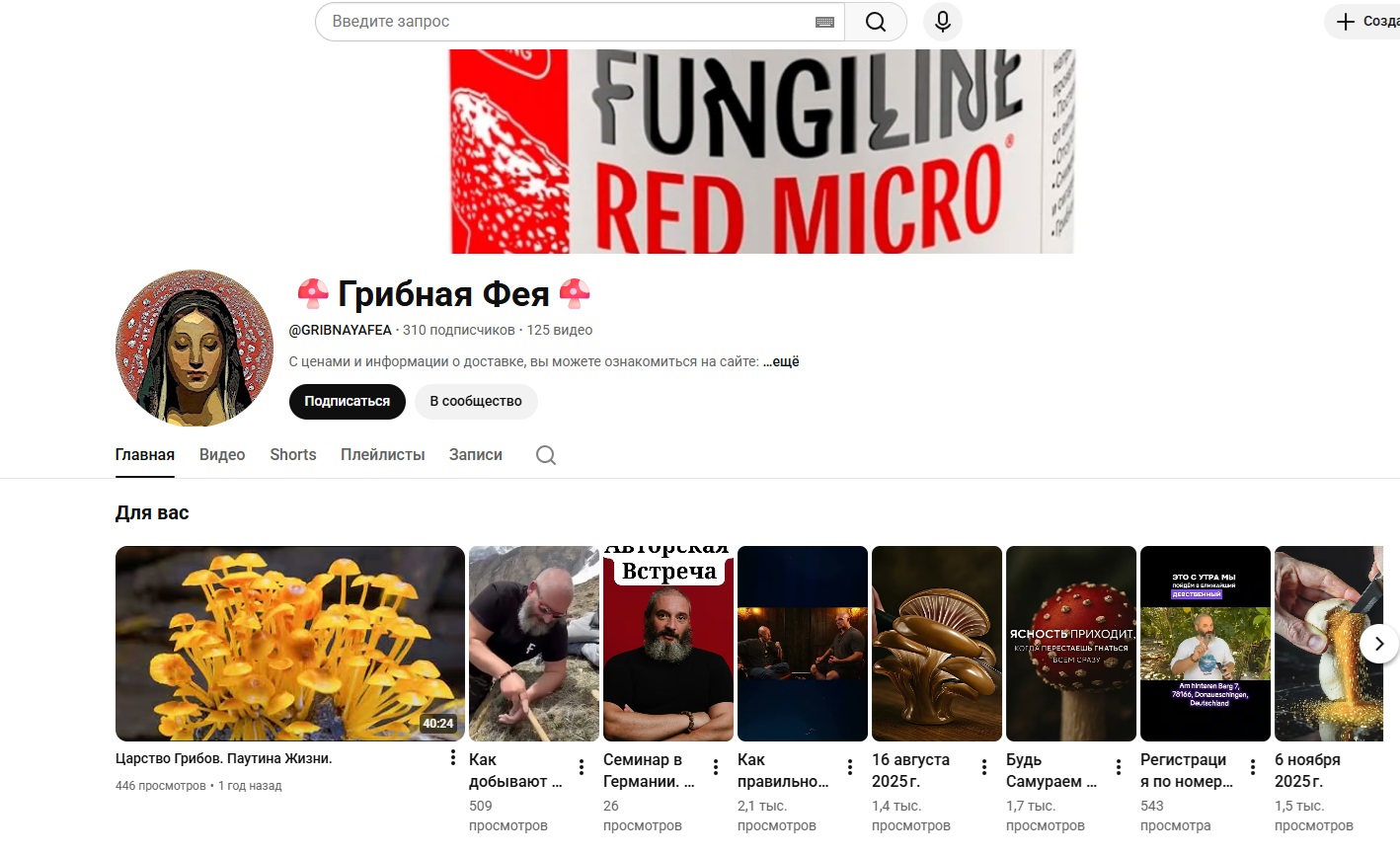 Проект «Грибная фея» специализируется на фунготерапии и продаже товаров, связанных с лечебными грибами. Автор продвигает свою деятельность как научно обоснованное направление, ссылаясь на международные исследования.