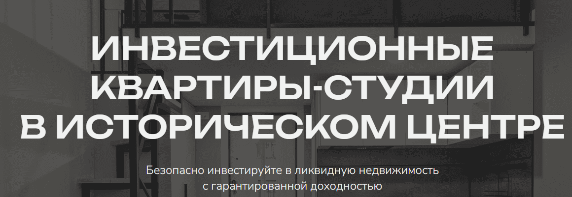 Агенство «Метры Групп» предлагает всем желающим купить инвестиционные квартиры-студии в историческом центре Петербурга. Создатели проекта отмечают, что доходность объектов является «гарантированной». Это признак мошенничества: результаты любых вложений невозможно предсказать.