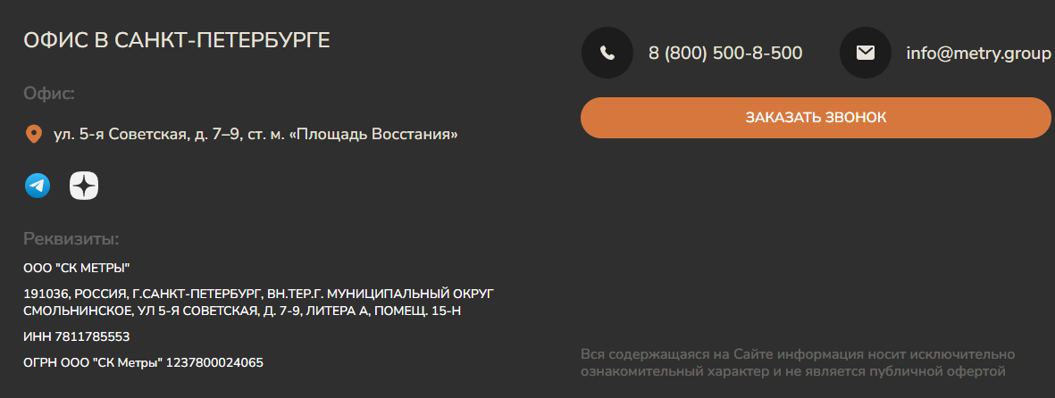 Кроме того, доступны телеграм-бот @ Metry Group Bot и Дзен-канал Metrigroup. Однако эти варианты не позволяют получить ответ на свой вопрос от «живого человека». Авторы некоторых отзывов о ГК «Метры» на Гражданском просп., 47 жалуются на качество работы техподдержки.