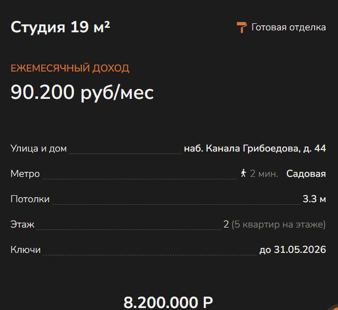 Аферисты соблазняют потенциальных клиентов, точно указывая ежемесячный доход, который они получат после приобретения. Скамеры «забывают» о рисках и не сообщают, что квартиру могут и не арендовать или случится другой форс-мажор, который повлияет на размер профита.