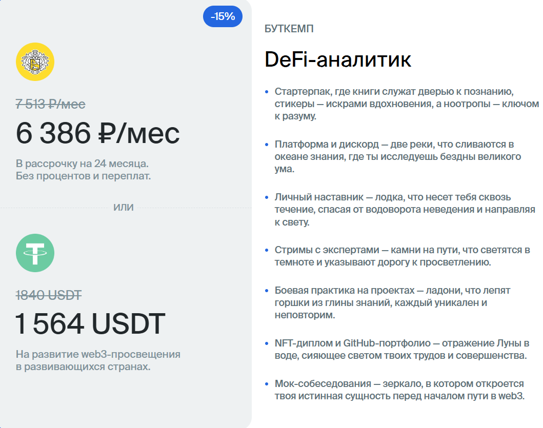Однако в опубликованной на сайте школы Guidedao оферте указано, что выдачи каких -либо документов об образовании или квалификации не предусмотрено по окончанию курсов. Мы знаем, что в РФ уже практикуется выдача NFT дипломов.