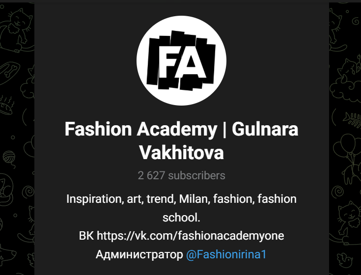 На ее телеграм-канал Fashionacademymilan подписано 2,6 тысяч человек. Это площадка работает с ноября 2021 года, но сообщения начали появляться с марта 2022 года. Публикации тут выходят не часто, их можно комментировать. Поэтому отзывы Гульнара Вахитова о «Конструировании» в Телеграм может получать напрямую. Посты набирают 200-500 просмотров. Также есть обращения от автора на видео, сообщения о проведении оффлайн занятий в определенных городах, информация о возможности последующего обучения за границей. Администратором канала является @Fashionirina1.